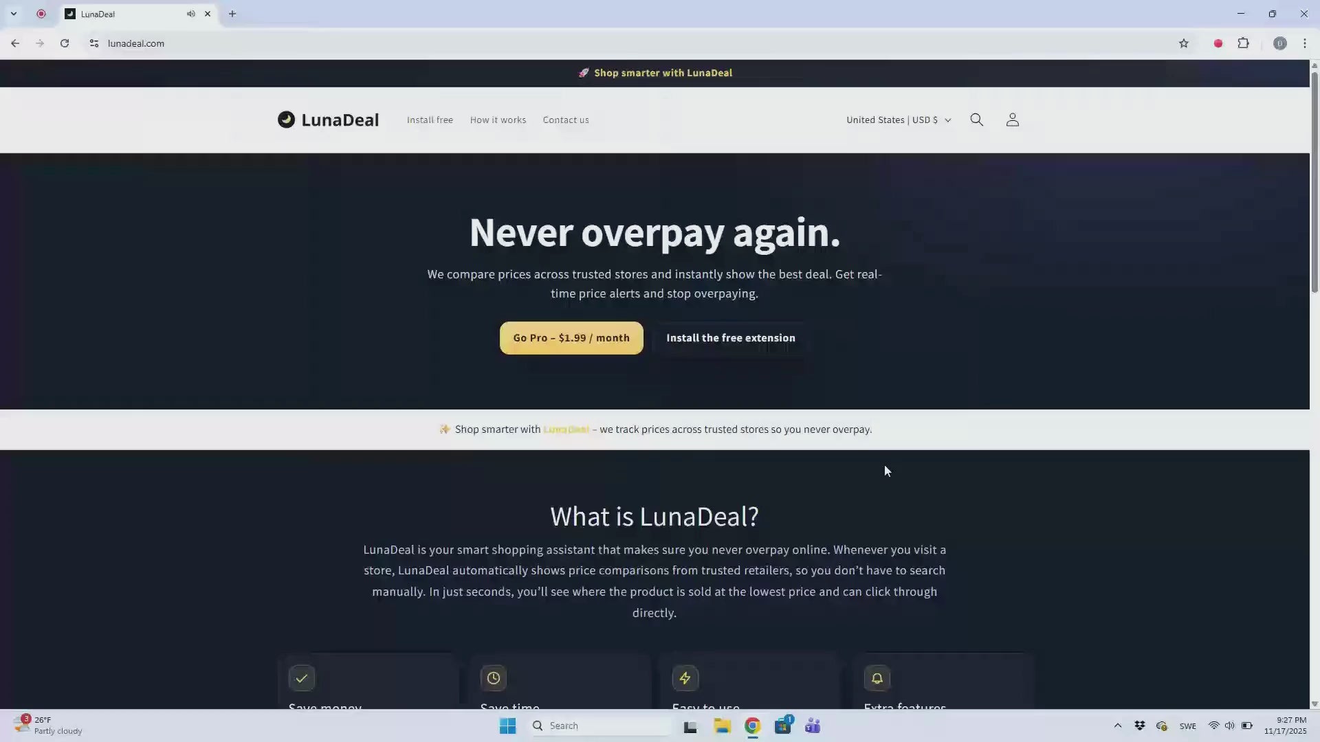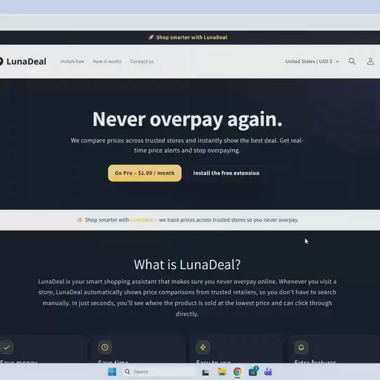LunaDeal PRO gives you exclusive features like product tracking, favorites, and smart price alerts directly in your browser. Compare prices, save time, and never miss a deal – all for a low monthly fee.